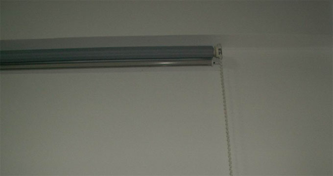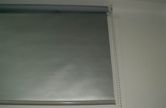 为了降低成本,幕布采用与窗帘结构一样的卷帘结构,幕布的升降采用拉绳的方式,看下图: