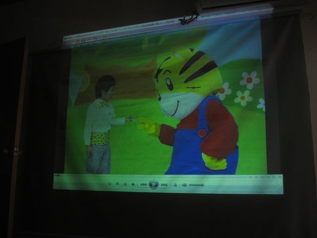 下方的这个图片是A投影机以及B投影机同时投影出来的图片,可以看到二个图像合起来后,看起来很乱: