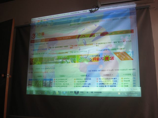 下面来进行双机偏振测试,这样更能看出来偏振效果以及原理,下方的这个图片是A投影机单独投影出来的图片: